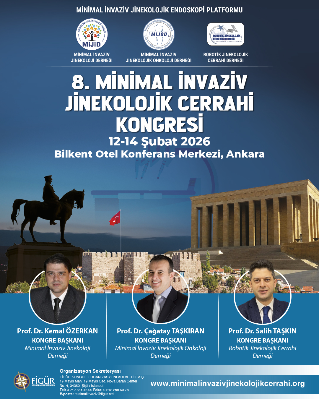 8. Minimal İnvaziv Jinekolojik Cerrahi Kongresi 12-14 Şubat 2026 tarihleri arasında Bilkent Otel Konferans Merkezi, Ankara’da gerçekleştirilecektir.